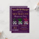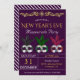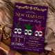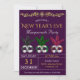 Invitation vos invités avec cette élégante invitation de la Saint Sylvestre avec de beaux masques masqués avec typographie moderne contre un arrière - plan violet foncé. Ajoutez simplement les détails de votre événement sur ce modèle facile à utiliser pour en faire une invitation unique. Retournez la carte pour révéler un motif à rayures violettes et blanches au dos de la carte.