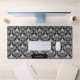 L'élégant motif vintage à damas floral blanc ceint sur la couleur noire personnalisée arrière - plan peut être facilement customisé en changeant la couleur noire arrière - plan. Cochez le texte monogramme, ou vous pouvez le supprimer.