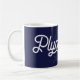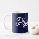 Cette tasse à café présente le texte Plymouth, Massachusetts dans une police nautique blanche avec des accents d'étoiles de mer. Sur le côté arrière se trouve une ligne motif d'étoiles de mer et de dollars de sable. L'arrière - plan est bleu marine, mais peut être changé à n'importe quelle couleur de votre choix. Parfait pour la décoration sur la plage, la côte ou la mer.
