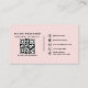 Faites revenir vos clients avec cette carte de fidélité rose QR Code Massage Therapist. Conçue avec un arrière - plan rose doux, cette carte allie élégance et fonctionnalité. Avec un code QR scannable, les clients peuvent facilement suivre leurs visites, gagner des récompenses ou accéder à des offres spéciales. La mise en page moderne et épurée vous permet de vous démarquer, tandis que le texte personnalisable vous permet d'ajouter votre logo, vos services et les détails de votre programme de fidélité. Parfait pour les massothérapeutes, les spas et les centres de bien-être, cette carte est une façon pratique et élégante d'encourager les affaires répétitives.