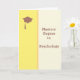 Masters Degree in Psychology carte de voeux aux couleurs jaune et crème. La carte a un capuchon de graduation avec un moule sur la partie jaune de la carte.