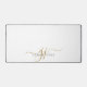 Un élégant tapis de bureau de style moderne et minimaliste, avec un nom sans serif et d'élégantes initiales en or swash. Pour la maison ou le bureau.
