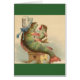 Conception vintage adorable et drôle de carte postale avec un poisson de mère se reposant sur un tabouret lui alimentant des poissons de bébé une bouteille.