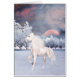 Unicorne à l'aube de l'hiver....ou coucher du soleil.....réglage. une façon magique de commencer ou de terminer la journée imaginaire carte de voeux