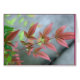 Salutations d'automne ou de vacances - feuille mince tournant le rouge, accentué avec des gouttes de rosée un matin brumeux.