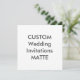 Invitations personnalisées de mariage MATTE - Carré de 5,25 po.Le type de papier le plus populaire, la texture Matte coquille d'œuf est douce au toucher grâce à une finition lisse, un support de choix pour vos designs. Carte de 120 livres, 17 points d'épaisseur.FABRIQUÉ AUX ÉTATS-UNIS.
