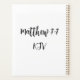 Ce planificateur présente une Écriture biblique entourée d'un cadre noir à thème floral avec des tournesols jaunes et des pétales verts sur le dessus d'un arrière - plan blanc affichant la Matthieu 7:7 KJV Bible Scripture & Citation dans une police d'impression rebelle avec des lettres noires sur la couverture de ce plannier de tournesol Bible. Les pages du planificateur sont imprimées sur du papier de haute qualité avec liaison filaire et transparence de grille avec "Matthew 7:7 KJV" imprimé à l'arrière. Ce planificateur comprend un aperçu mensuel et un espace de planification hebdomadaire composé de papier de 60 livres. Ce planificateur fera le cadeau parfait pour vous-même ou pour les autres.