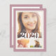 Cartes postales d'invitation de remise de diplômes sur mesure et abordables. Ce design féminin chic a un 3 modèle photo sur le devant avec vos détails d'invitation à la fête grad sur l'envers en noir et or texte sur un arrière - plan rose mauve poussiéreux. Utilisez les outils de conception pour choisir les polices et les couleurs que vous aimez ou télécharger plus d'images pour créer un faire-part de graduation totalement personnalisé.