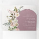 Un design élégant avec une touche rustique chic, avec branches, verdure, eucalyptus, fleurs aux tons d'automne, y compris quelques broussailles autour de l'information d'invitation sur un arrière - plan mauve léger. Cette invitation tout-en-un durable vous ferait économiser de l'argent, pas besoin d'inclure des enveloppes RSVP, vos invités couperont le dernier panneau et vous le renvoyer comme carte postale.