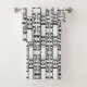 Ces étonnantes serviettes de bain présentent un motif géométrique abstrait contemporain de rectangles et de carrés qui ressemble à un labyrinthe imbriqué