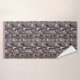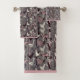 Motif moderne du milieu du siècle avec des oiseaux, des poules, des oies et des lanternes en rose, noir, blanc et gris avec des étoiles, des bandes et des lignes géométriques.