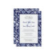 A floral wedding invitation with a pattern of meadow wildflowers in indigo blue. The meadow wildflowers create a delightful border, their natural beauty framing the text, which adds a touch of sophistication to the design. The result is an invitation that perfectly balances the rustic charm of the countryside with a touch of timeless elegance. A decorative script font is used for the couple's names with an ampersand in between.