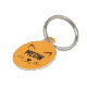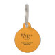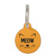 Médaille chat orange personnalisable avec le nom et les coordonnées, ornée d'une illustration de visage de chat mignon avec le mot miaou sur la zone des yeux. Personnalisez-la en remplaçant le nom exemple Maggie par le nom de votre animal et en ajoutant les coordonnées correctes au dos de la médaille.