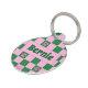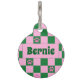 Médaille d'identification pour chien Rose Vert Empreinte Rétro Dopamine Cette médaille d'identification pour animal de compagnie ludique et rétro présente un motif à damier rose vif et vert pistache avec des accents d'empreintes mignonnes et un nom d'animal facile à lire sur le devant. Inspiré par le design du milieu du siècle et le style dopamine, il ajoute de la personnalité tout en gardant votre chien en sécurité.