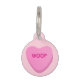 Habillez votre chien chéri avec cette médaille pour chien en forme de coeur de bonbon rose pour célébrer à quel point vous l'aimez. Coeur de conversation rose avec WOOF sur un fond rose clair. Personnalisé au verso avec le nom de votre chien, votre nom et vos coordonnées. Colliers et laisses assortis disponibles pour compléter leur tenue de la Saint-Valentin.