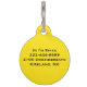 Balise de chien brillant amusant fait en jaune ensoleillé, avec un os de dessin animé blanc, sur le devant. Personnalisez le texte noir avec les informations de votre chien. Idéal avec nos produits chien assortis.