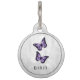 Médaillon Pour Animaux Balise papillon pourpre Floral Round Pet