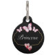 Cette adorable étiquette d'identification pour animal de compagnie pour un chien ou un chat est ornée d'un simple arrière - plan noir avec un cadre doré qui a de jolis papillons roses et blancs au sommet. Au fond, il y a deux coeurs d'aquarelle uniques. Vous pouvez personnaliser le nom de votre animal sur le devant et mettre vos coordonnées au dos de l'étiquette de chien ou de l'étiquette de chat.