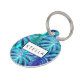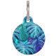 Bleu avec des touches de violet, Tropical Palm Tree Feuilles balise d'identification de l'animal de compagnie personnalisée avec le nom de votre animal de compagnie.