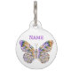 Papillon à étincelle métallique sur blanc ID animal de compagnie Balise Police violette