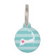Laissez votre ami furry montrer une fierté de la ville natale avec cette mignonne étiquette d'identification de animal de compagnie Cape Cod. Design présente une carte en silhouette blanche de Cape Cod, Massachusetts avec un coeur rose à l'intérieur, sur un ton sur ton bleu turquoise arrière - plan rayé. Ajoutez le nom et les coordonnées de votre animal à l'arrière en lettres blanches sur un arrière - plan aqua.