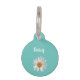 Identificateur de chat Kitty, avec marguerite blanche sur un arrière - plan vert turquoise. Avec des lettres personnalisables en blanc, vous pouvez ajouter vos propres informations. Le dos vous permet d'ajouter votre nom et votre numéro de téléphone si votre animal se perd. Parfait pour ajouter un style mignon à la mode de votre animal de compagnie!