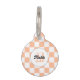 Checkered peach white geometric retro Monogram Pet ID tag. Checkered squares geometric retro pattern gift for dogs. Cool retro checkered geometric square pattern. Vintage tile peach white modern checker. Personalize with your custom pet initial and name and contact information.