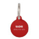 Faites connaître l'état de votre chien et aidez le monde autour de lui à savoir qu'il est diabétique. La silhouette originale du portrait de chien blanc de Destei représente la tête d'un chien ressemblant à un Golden Retriever et des races similaires avec des oreilles suspendues. Au-dessus du chien, on lit "Diabétique" et sous le chien, on lit : "Chien" en caractères blancs gras. La bordure ronde blanche entoure le design et la couleur arrière - plan est rouge. De l'autre côté, il y a des zones de texte personnalisables pour un nom et un numéro.