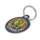 Clan Johnston crête badge entouré d'une sangle et boucle sur l'arrière - plan tartan. Texte personnalisé des deux côtés.