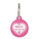 Coeur blanc sur une couleur arrière - plan rose. Dans le coeur, il y a un empreinte de patte rose et un texte qui dit : "chien Secourt". De l'autre côté il y a des zones de texte personnalisables pour le nom de l'animal et pour un numéro de téléphone.