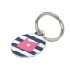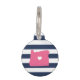 Laissez votre ami furry montrer une certaine fierté de l'état de la maison avec cette mignonne étiquette d'identification de animal de compagnie de l'Oregon. Design présente une carte en silhouette blanche de l'état de l'Oregon en rose avec un coeur blanc à l'intérieur, sur un arrière - plan rayé bleu marine et blanc préppy. Ajoutez le nom et les coordonnées de votre animal de compagnie à l'arrière en lettres blanches sur un arrière - plan rose.