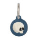 Mignonne, crâne de dessin animé Halloween design sur bleu. J'adorerais voir ce design dans la nature ; étiquetez-moi sur Instagram @parry_vegan.