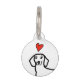 Portrait de dessin simple mignon Dachshund en combinaison avec coeur rouge et nom personnalisé à l'arrière. Unique, adorable, étiquette d'identification monogrammée, parfait pour chien weenie.
