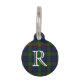 Étiquette de chien décorée d'un monogramme d'amusement avec l'avant fait dans le motif bleu, vert, et rouge de plaid de Gunn de clan, avec un grand monogramme de lettre du blanc un. Le dos de l'étiquette est fait dans bleu-foncé, avec le texte blanc. Personnalisez le monogramme et le texte sur de nouveau au costume vos besoins.