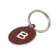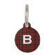 Belle étiquette de chien monogrammed avec le devant fait dans le clan rouge, noir et jaune motif Brodie plaid, avec un grand monogramme blanc une lettre. Le dos de la balise est fait en rouge, avec du texte blanc. Personnalisez le monogramme et le texte au dos pour répondre à vos besoins.
