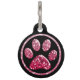 Étiquette d'identification d'animal familier - obscurité dentelle l'empreinte de patte de Bling sur le noir - personnaliser avec votre nom d'animal familier, votre nom et votre nombre