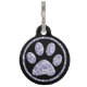 Étiquette d'identification d'animal familier - empreinte de patte de lt Purple Bling sur le noir - personnaliser avec votre nom d'animal familier, votre nom et votre nombre