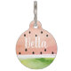 Assurez-vous que votre animal reste en sécurité avec cette étiquette d'identification personnalisée. Cette étiquette présente une empreinte ludique de pastèque dans les tons coraux et verts.