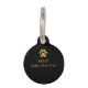 Cette étiquette d'identification de chien classe présente le monogramme de votre chien en noir sur un faux empreinte de patte de feuille d'or contre un arrière - plan noir. Customisez l'envers avec le nom de votre chien et votre numéro de téléphone ou d'autres coordonnées en texte de couleur or sur un arrière - plan noir sous un empreinte de patte doré plus petit.
