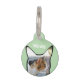 Cette étiquette d'identification de chat présente une belle silhouette d'une tête de chat dans laquelle vous pouvez ajouter la photo de votre chat. L'arrière - plan vert clair le Customise avec son nom, votre adresse et votre numéro de téléphone.