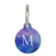 Galaxie violette et bleue étoiles arrière - plan avec un chat ou chien monogramme personnalisé initiale et nom. Tapez vos coordonnées personnalisées au dos de ce joli charme de collier d'identification d'animal de compagnie. Nous avons également des bols de coordination pour vous permettre de créer un ensemble d'accessoires de compagnie assortis qui correspondent à la personnalité de votre chat ou chien ... ou votre décor maison.