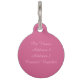 Ce chien-tag impressionnant présente une image graphique d'un joli bourdon rose avec des rayures rose vif, des yeux noirs, des antennes roses et des pattes noires. Il possède de jolies ailes bleues et blanches. L'abeille est assise au milieu d'un joli tournesol rose. La fleur a une tige verte et trois feuilles. Le message "Bee Day Girl" apparaît sur les trois feuilles. L'arrière - plan est composé d'un motif peigne rose vif. Il y a du texte personnalisable sur le dos pour vous détails en s'assurant que si votre chien se perd un jour, il peut être retourné à la maison en toute sécurité et bien.