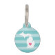 Laissez votre ami furry montrer une certaine fierté de l'état de la maison avec cette mignonne étiquette d'identification du Michigan. Design présente une carte en silhouette blanche de l'état du Michigan avec un coeur rose à l'intérieur, sur un ton sur ton bleu turquoise arrière - plan rayé. Ajoutez le nom et les coordonnées de votre animal à l'arrière en lettres blanches sur un arrière - plan aqua.
