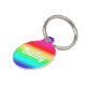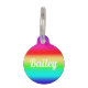L'arc-en-ciel colore l'étiquette d'animal familier de rayure de gradient. Personnalisez la typographie cursive élégante avec un nom, le monogramme, ou tout autre texte sur l'avant et le dos de l'information de contact de propriétaire d'animal familier dessus. Avec son arrière - plan inspiré lumineux et audacieux de couleur, cette rétro conception d'arc-en-ciel fait une étiquette d'identification classique et moderne. Idée mignonne et à la mode de cadeau pour le chien ou l'amoureux des chats.