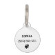Le design modèle photo simple mais élégant de Destei affiche n'importe quelle photo en forme de cercle avec des bords doux. L'arrière dispose de deux zones de texte personnalisables, parfaites pour le nom d'animal de compagnie personnalisé et pour le numéro de téléphone du propriétaire. Il y a aussi une silhouette de patte de chien noir. Veuillez entrer l'outil de conception si vous avez besoin d'ajuster le placement de votre photo ou si vous souhaitez changer la couleur de police noire en une autre couleur. Vous pouvez également modifier la taille et le style de la police dans l'outil de conception.