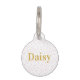 Gardez votre animal de compagnie en sécurité de façon élégante avec cette étiquette d'identité personnalisée motif en confetti rose moderne et mignonne. Cette étiquette comporte leur nom dans une police de style rétro couleur or et vos détails en toute sécurité au dos.