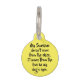 Ce tag pour chien a un arrière - plan jaune et un poème court d'un auteur inconnu : Mon soleil ne vient pas du ciel, il vient de l'amour dans les yeux de mon chien. Vous pouvez modifier la conception pour ajouter le nom/l'information de votre chien au dos de la balise. Vous pouvez également modifier la couleur police/arrière - plan.