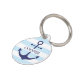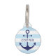 Nautical ancre bleu marine foncé, motif rayures bleu clair et blanc nom personnalisé coordonnées mignon moderne chien / chat Étiquette d'identification pour animal de compagnie.