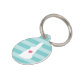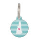 Laissez votre ami furry montrer une certaine fierté de l'état de la maison avec cette mignonne étiquette d'identification de animal de compagnie du New Hampshire. Design présente une carte en silhouette blanche de l'état du New Hampshire avec un coeur rose à l'intérieur, sur un ton sur ton bleu turquoise arrière - plan rayé. Ajoutez le nom et les coordonnées de votre animal à l'arrière en lettres blanches sur un arrière - plan aqua.