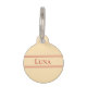 Cette étiquette d'animal de compagnie de pêche a des lettres rouges blanches au centre. Vous pouvez modifier les lettres pour afficher le nom correct sur le devant. Deux lignes horizontales rouges sont au-dessus et au-dessous du texte. Vous pouvez modifier les chiffres pour afficher votre numéro de téléphone.